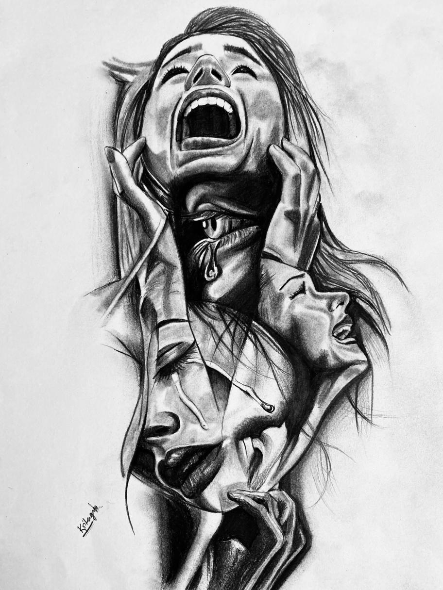 She was moved, touched, and charmed by virtually everything around her. I start by sketching in segments or phases before putting pencil to paper. I visually analyze facial features, study them, and then draw sketches by understanding expressions. This helps me grasp the work process that goes into each portrait drawing.